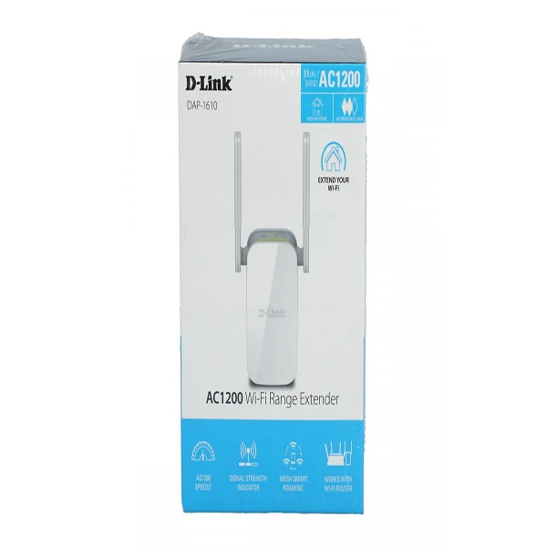 توسعه دهنده DAP 1610 ، یک توسعه دهنده از برند معروف و شناخته شده دیلینک (ِD-Link) است. این گسترش دهنده (پلاگین) دیواری ، دامنه سیگنال Wi-Fi را گسترش میدهد. DAP 1610 در دوباند با سرعت 1200 مگابیت برثانیه فعالیت میکند. توسعهدهنده DAP 1610 میتواند اینترنت را به صورت کانون (Hotspot) در اختیار دیگر کاربران در اتاقهای دیگر قرار دهد. اگر نیاز دارید که دامنه سیگنال افزایش یابد، کافیست دکمه WPS را نگه دارید در عرض چند ثانیه گسترش دهنده، دامنه سیگنال را افزایش میدهد. انعطاف دستگاه بسیار زیاد است، میتوانید با استفاده از برنامه رایگان QRS Mobile در یک تلفن هوشمند، توسعه دهنده را به روتر خانگی (یکی از روترهای D-Link) متصل شوید. قابلیتهای ویژهی توسعه دهنده DAP 1610 دیلینک : DAP 1610 را به برق متصل کنید و قدرت سیگنال را در خانه افزایش مییابد. DAP 1610 در دو باند فعالیت میکند و هیچگونه تداخلی نخواهد داشت. چراغهای روی DAP 1610 به کاربر کمک میکند ، بهترین نقطه منزل یا دفتر را انتخاب کنید تا پوششدهی بهتر انجام شود. میتوانید به دستگاههای دیگر با کابل متصل شوید مانند تلویزیون یا کنسول بازی یا به طور وایرلس به دستگاه متصل شوید. با لمس یک دکمه ، دستگاهی را به Wi-Fi خود متصل کنید.