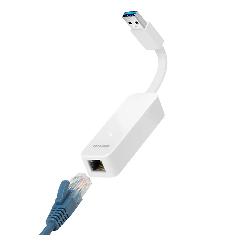 مبدل USB3.0 به اترنت (Ethernet) مدل UE300 شرکت تی پی لینک (TP-LINK) به شما این امکان را میدهد که کابل LAN را به ورودی USB کامپیوتر خود وصل کنید. این مبدل برای لپ‌تاپ و سیستم های فاقد پورت LAN به صورت اکسترنال استفاده می شود. حتی در کامپیوتر یا لپ‌تاپ‌هایی که به یک درگاه LAN مجهز هستند می‌توان تعداد درگاه LAN را افزایش داد. به کمک این مبدل، می‌توان از خروجی USB3.0 یک درگاه شبکه به صورت اکسترنال دریافت کرد. این مبدل سرعت انتقال اطلاعات تا 1000 مگابیت بر ثانیه را دارد و بدون هیچ قطعی در ارتباط، انتقال اطلاعات را پشتیبانی می کند. علاوه براین، قابلیت سازگاری با سیستم عمل مک (Mac) و لینوکس (Linux) را در کنار پشتیبانی از سیستم‌عامل ویندوز (Windows) دارد.